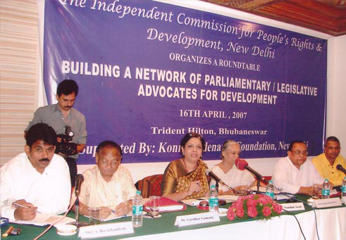 The Independent Commission for People's Rights and Development (ICPRD) is spearheading a unique concept of "Citizens' Interface" with a Report on Governance through its MPs/MLAs/Exposure Visit Scheme that is being initiated by an NGO for the first time in the country. Through Round table meetings, it brings citizens' concerns from the backburner to the fore. A mechanism whereby government’s mid-course correction can be possible. Four such Citizens’ Interfaces have been successfully held since 2005 in Bangalore, Rajasthan, Orissa and Pondicherry. Over 70 MPs/MLAs have participated in the round tables. In the current Parliament, around 10% have been part of the activities. Over 100 media, 80 eminent citizens/NGOs and 22 MPs/MLAs have participated in the 4 interfaces in 2 years.