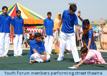 The project built alliances with young men to actively participate in reducing gender discrimination and inequality through a process of re-socialization. The outreach efforts were based on values of equality, responsibility and honesty. Youth forums were formed to run various outreach programs. The main outreach programs included street theater, public events such as cycle rallies, cricket matches, debates, poster competitions etc. The project invested in skills and capacity building of Youth Forum Leaders on gender based violence. Using Information, Education and Communication (IEC) tools, youth forums organized several events for mass awareness on such issues as alcoholism, dowry, girl child discrimination, female foeticides, child marriages and domestic violence.